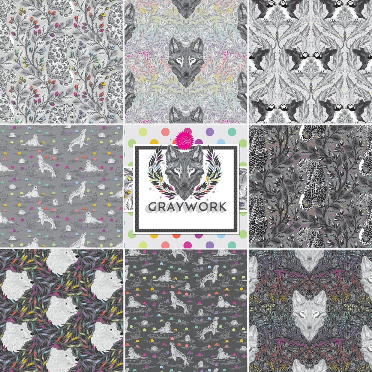 Full Collection from the Graywork fabric collection by Tula Pink.