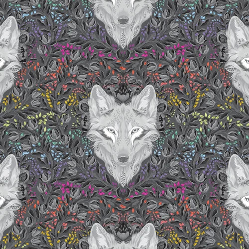 Wolf of Pink Street Carbon PWTP256 from the Graywork 2025 fabric collection by Tula Pink.